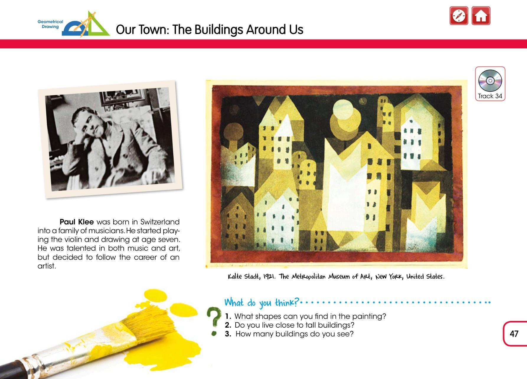 - Ahí mismo en tu libro, atrás de la página 47, coloca las figuras y remárcalas, o bien puedes pegar esas mismas figuras, formando edificios. Para las ventanas o decoraciones con el círculo, triangulo y cuadro más pequeños si deberás remarcarlos sobre los edificios. Ya que solo hay una pieza de cada uno. Usa tu imaginación.