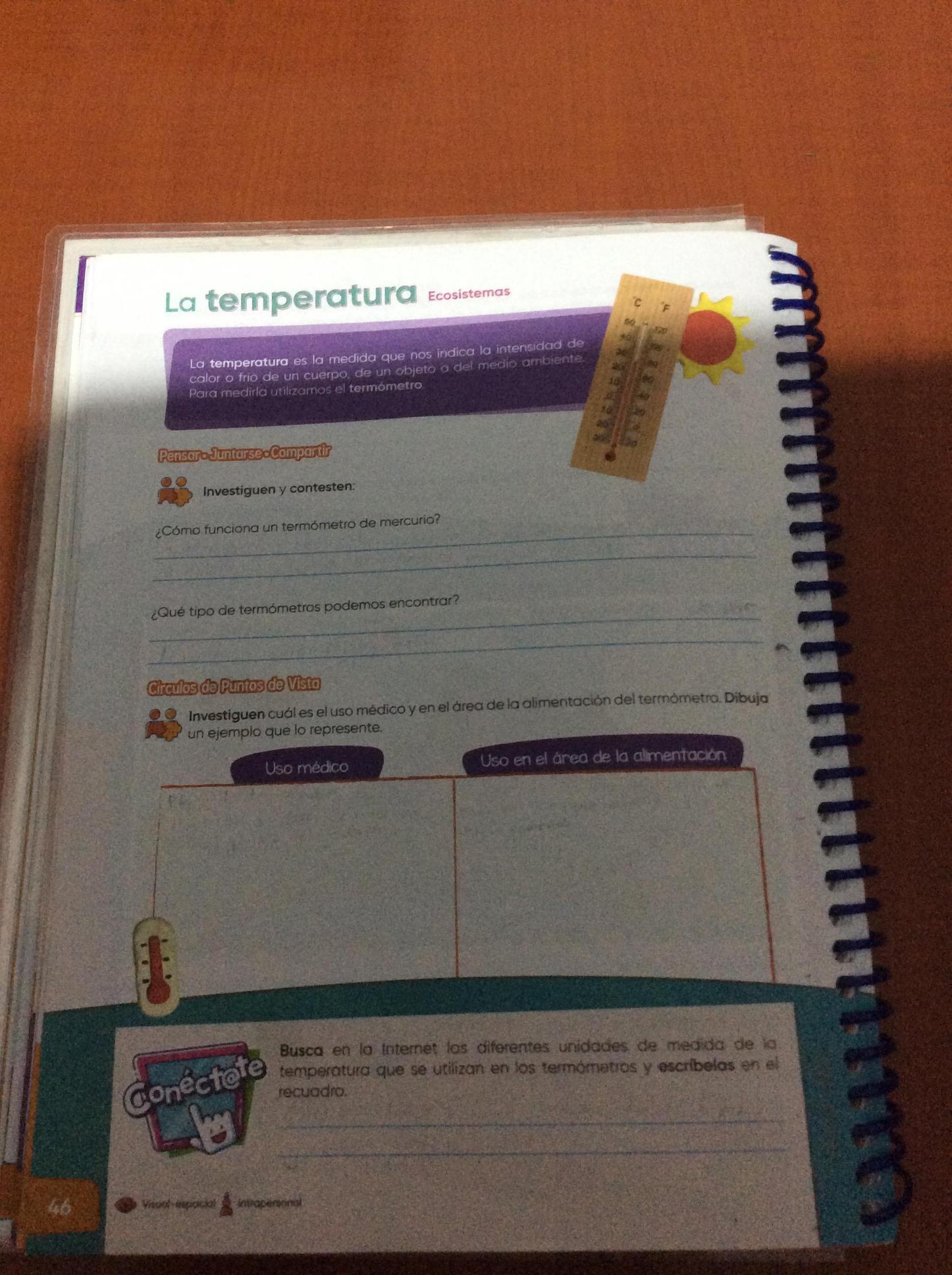 - Dar lectura a la página 46 de su libro Activa, comprender el concepto de temperatura.