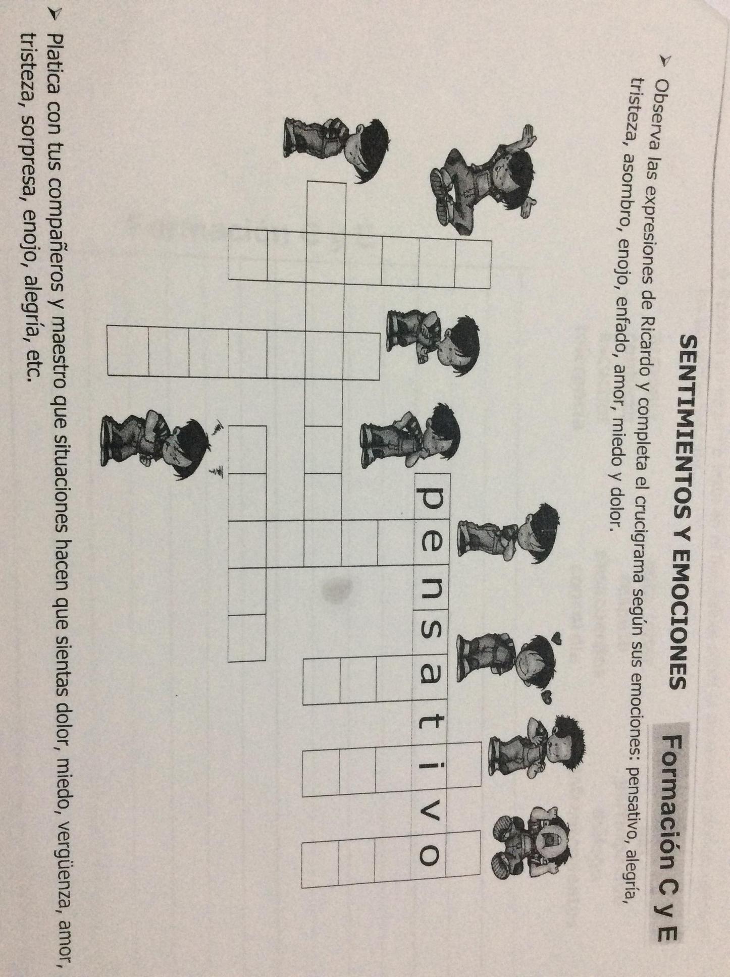 - Observa las expresiones de Ricardo y completa el crucigrama según sus emociones.