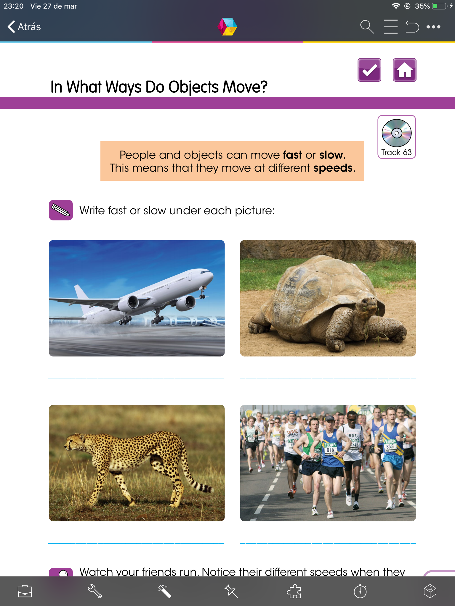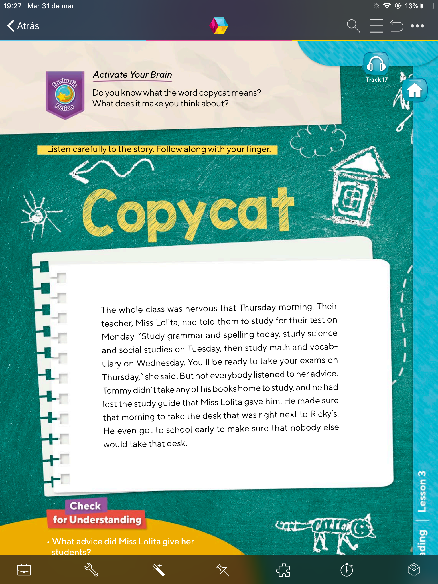 - Escucha cuidadosamente la historia (Track 17), síguela con tu dedo.
