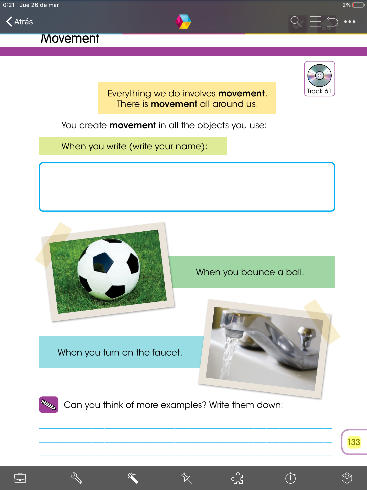 - Abre tu libro de Knowledge en la página 133 y observa las imágenes, después escucha el audio (TRACK 61)