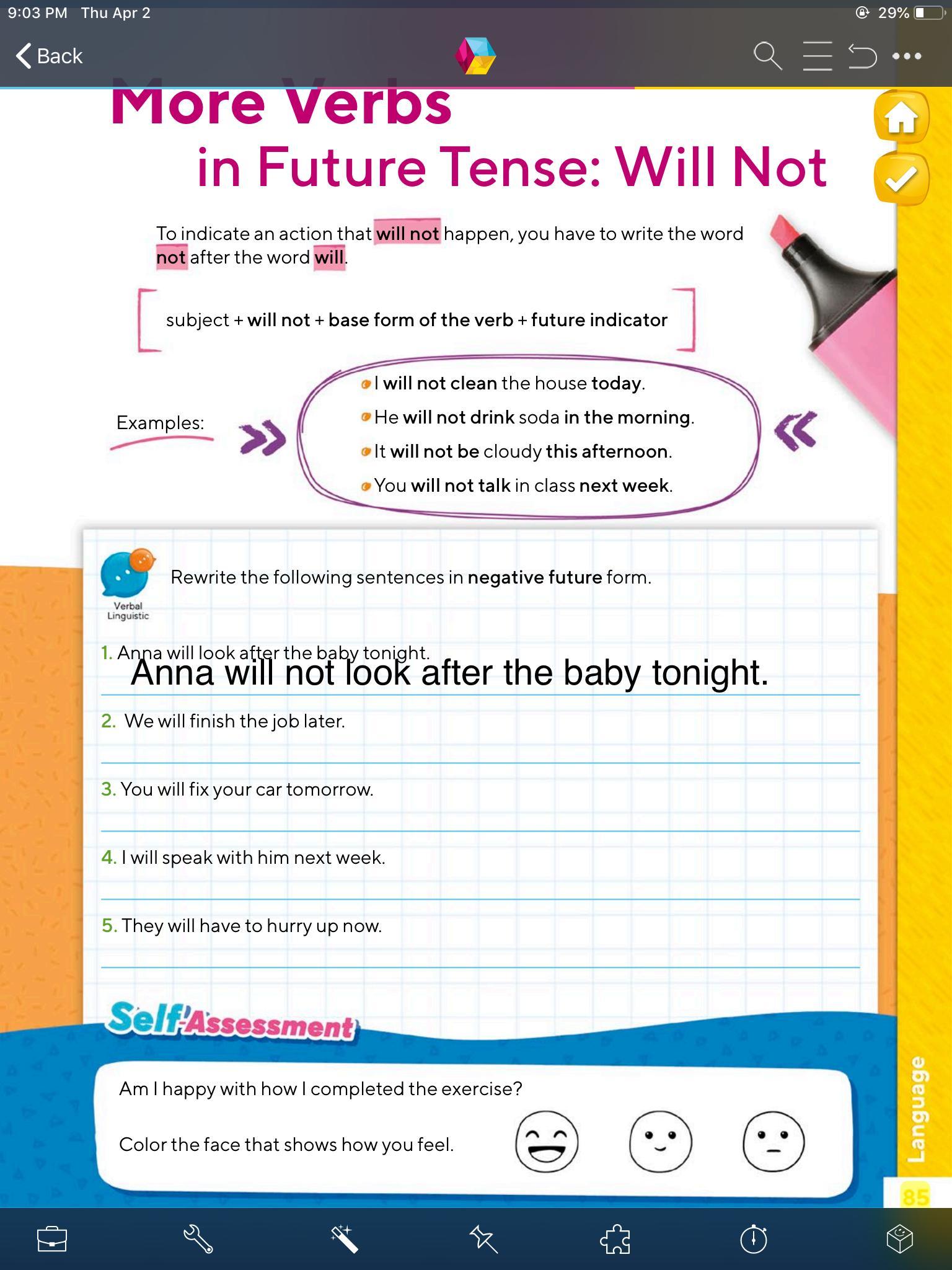 Tema: More Verbs in Future Tense: Will Not