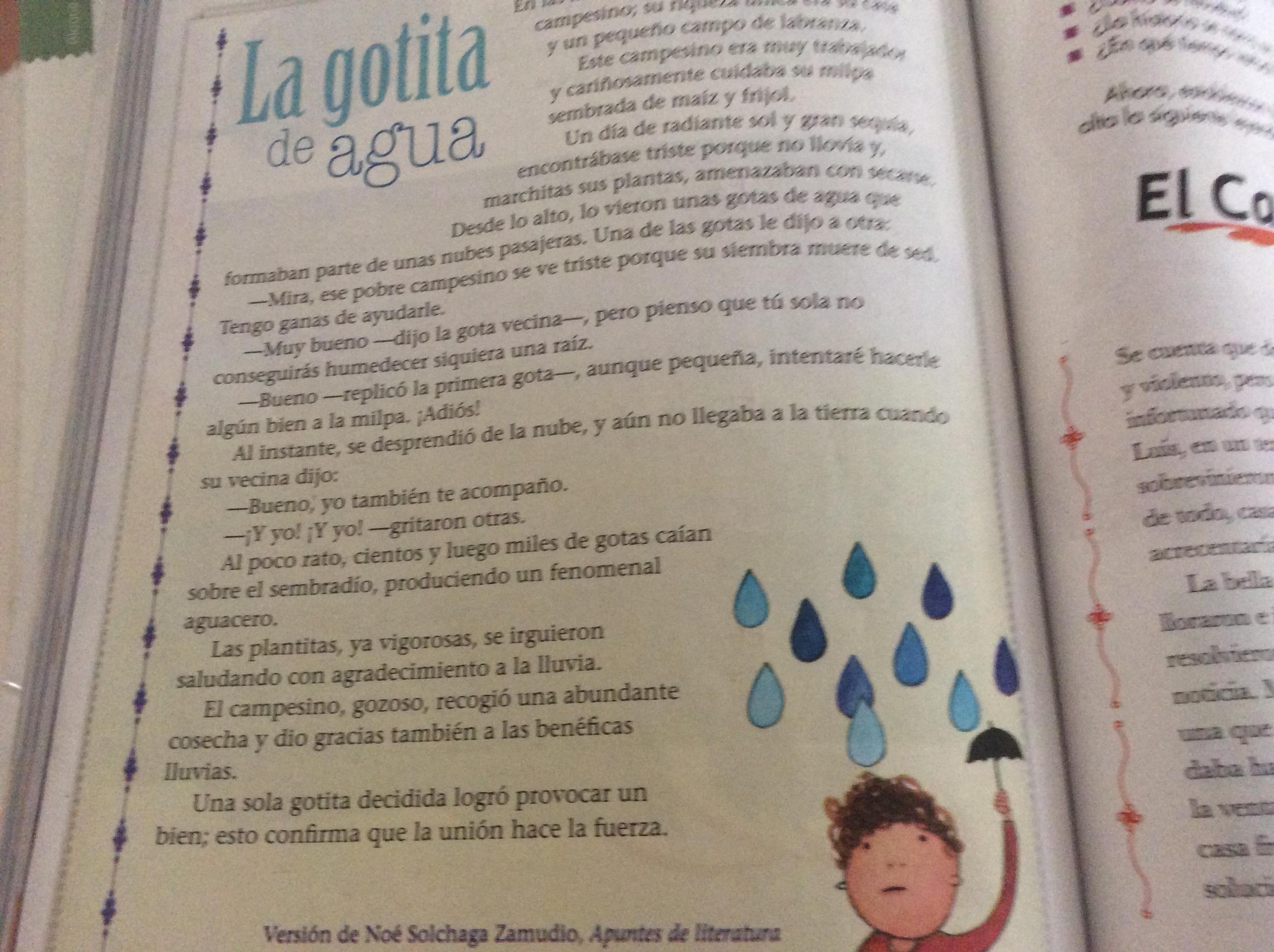 ACTIVIDADES: Abre tu libro de Español SEP en la página 110 y lee en silencio el texto La Gotita de Agua.