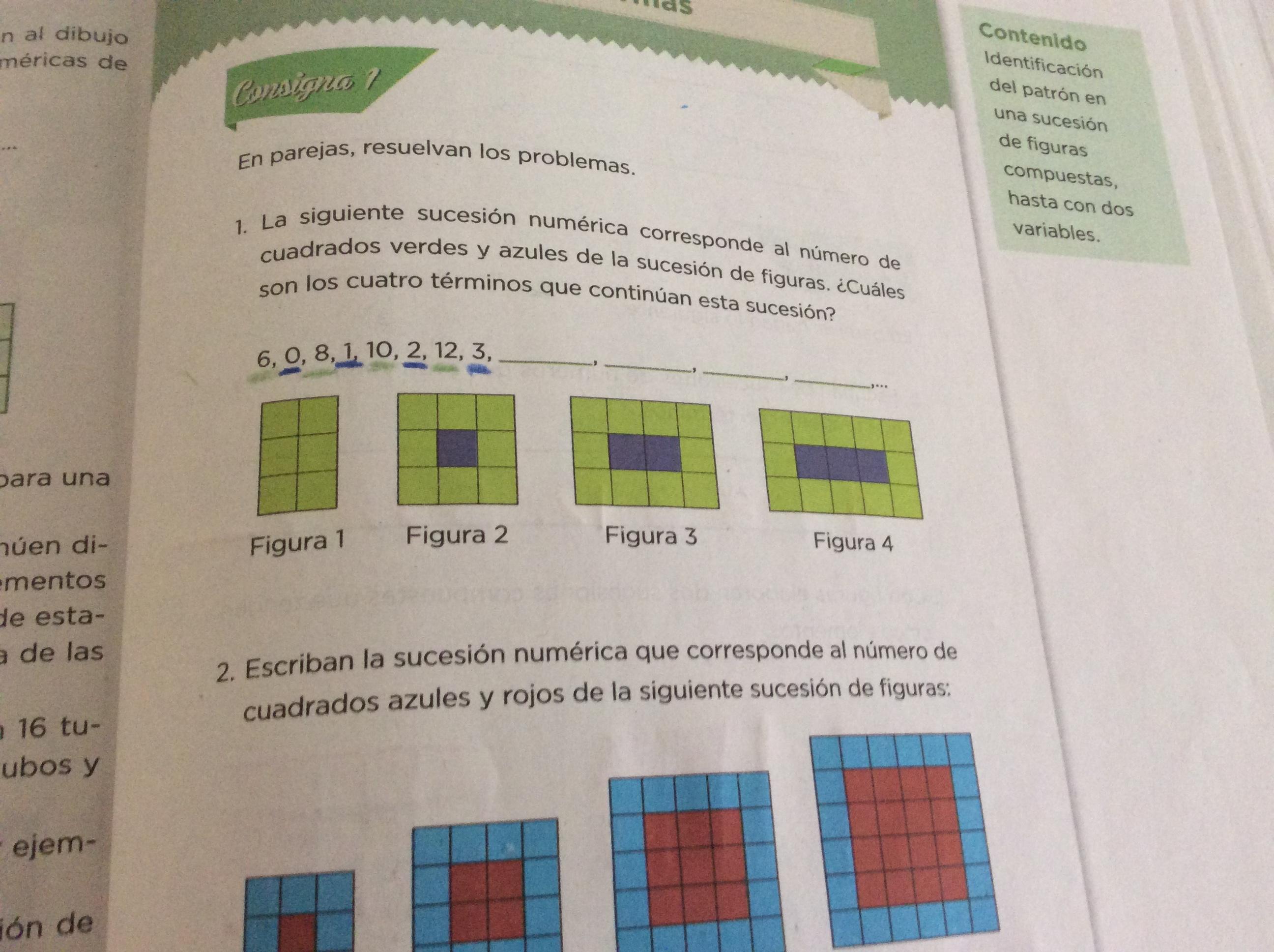 -Te darás cuenta que hay una serie de figuras que utilizan el color verde y el azul que van aumentando .